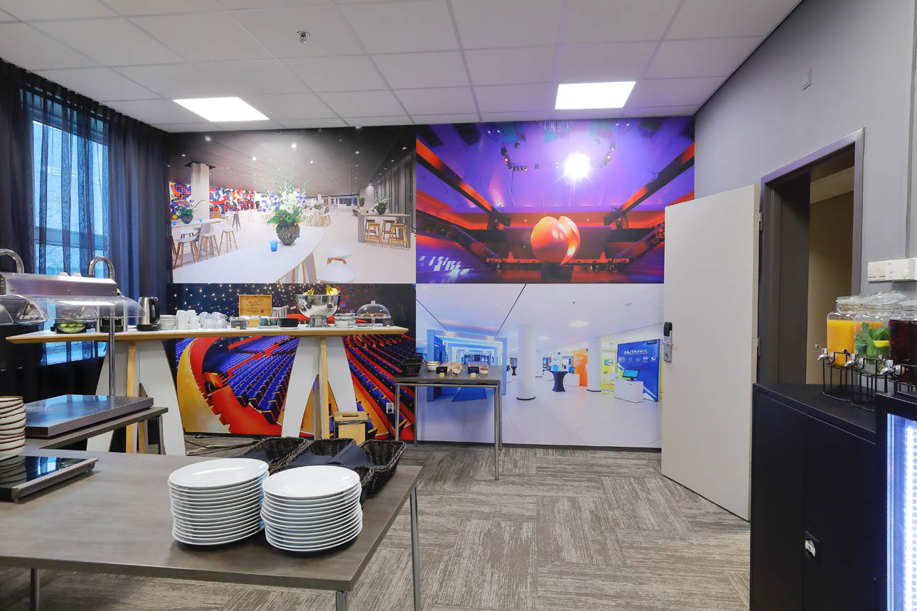 Working at the World Forum requires flexibility and experience. The lighting differs significantly from room to room. From bright stage spots in the main hall to dim breakout areas with blue or colored lights. Careful editing afterwards is essential to deliver consistent, high-quality results. I prepare thoroughly and work efficiently. Over the past decade, I’ve photographed many events at the World Forum and also created images for the venue itself. For example, photographing fully prepared rooms before the start of conferences. These images were later used by the World Forum for their own promotional materials. The photo’s on this wall at a room in the World Forum, where shot by me:
