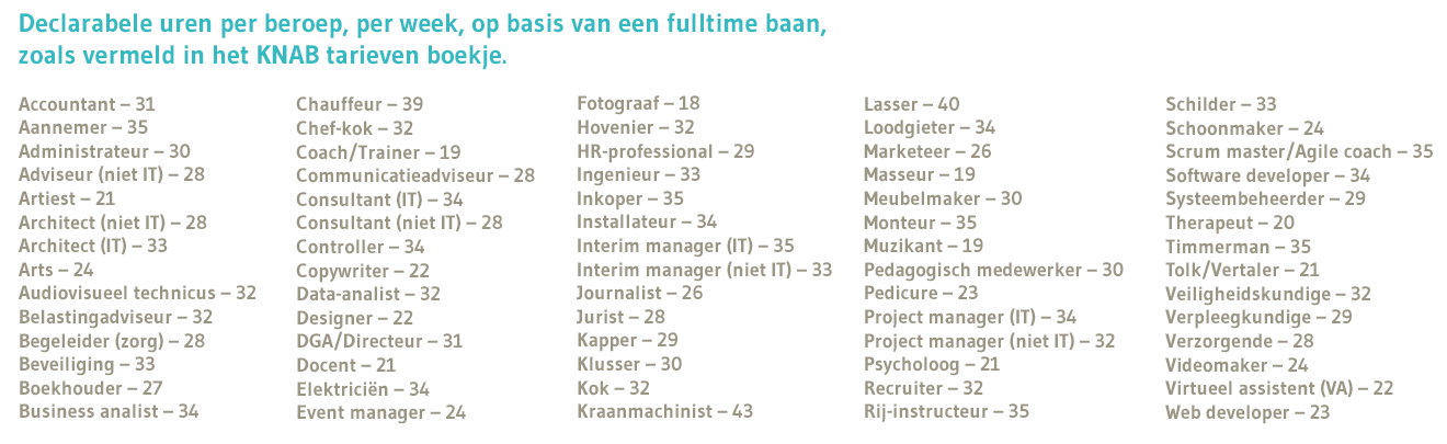 Dat is prima als dat het gemiddelde is van de markt waar je je als zelfstandige in bevindt, maar voor de meeste zzp-ers werkt dat niet want die hebben te maken met andere gemiddelde declarabele uren.